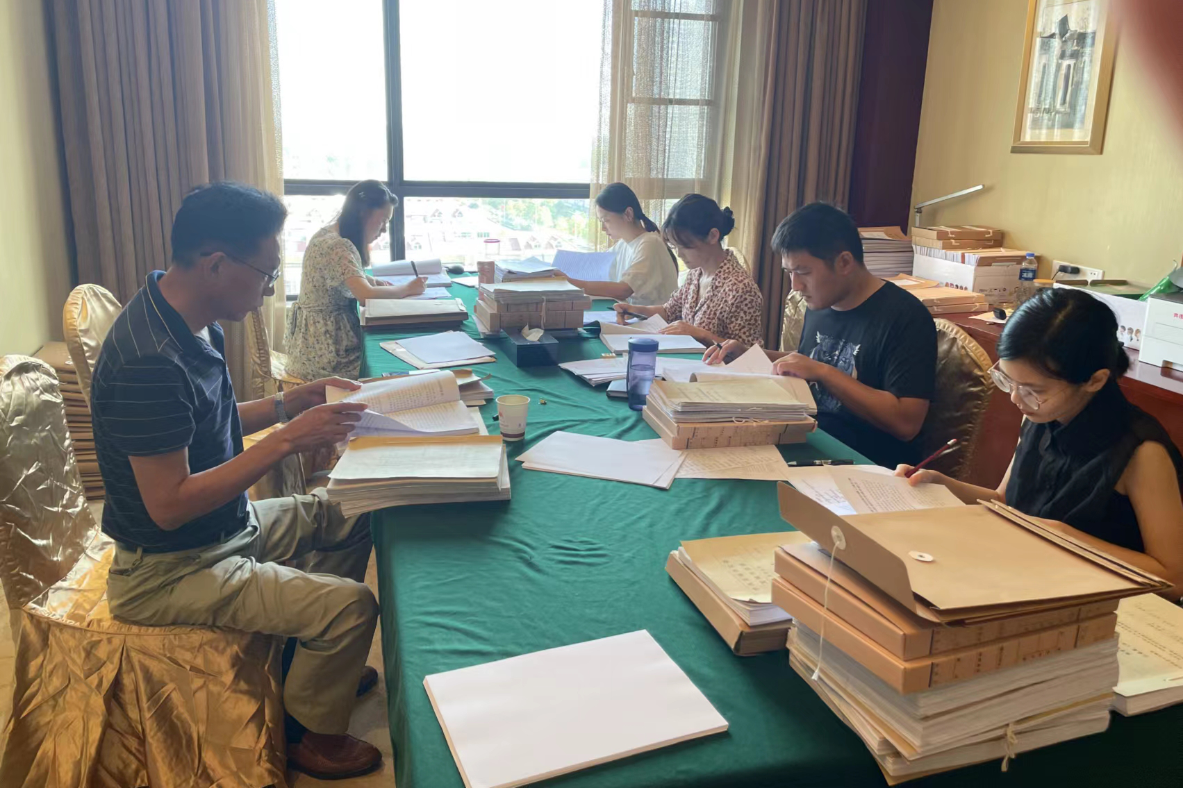 图为襄阳市案件评查组现场阅卷评查案件质量