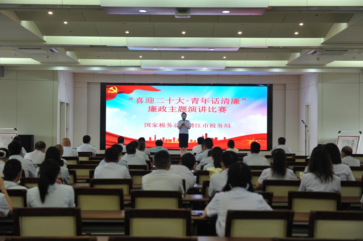 青年“话”廉引共鸣。该市举办“喜迎二十大·青年话清廉”廉政主题演讲比赛,年轻干部以自信饱满的姿态和充满激情的语言,讲述革命先烈和中国当代优秀共产党人的廉洁故事,并依次分享了自己对清廉的认知、感悟与解读,在说廉讲廉中厚植清廉理念。图为潜江市税务局开展廉政主题演讲比赛现场。