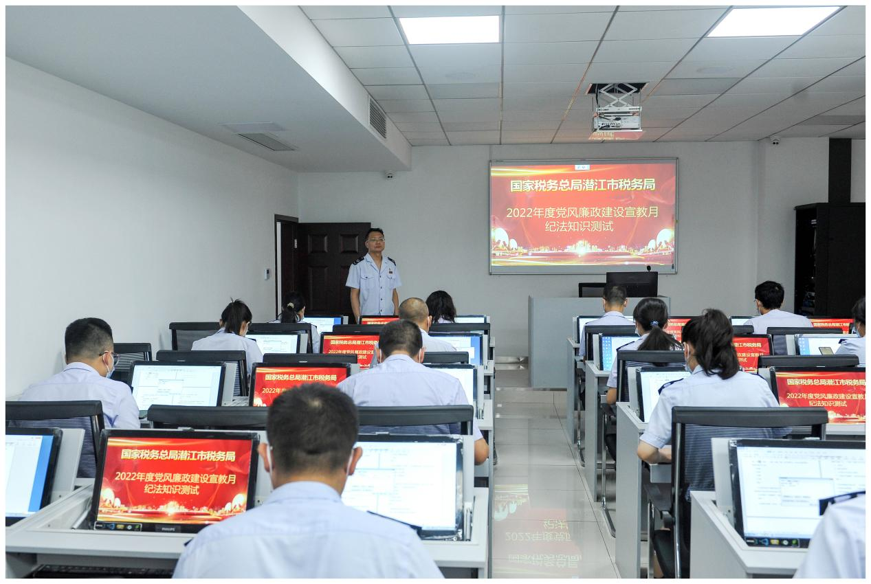 青年“考”廉固成果。该市将《中国共产党章程》《中国共产党纪律处分条例》《中华人民共和国监察法》等党纪法规纳入年轻干部日常学习当中,定期组织纪法知识测试,通过线上答题、线下闭卷测试等方式,以考促学,督促年轻干部筑牢拒腐防变思想防线。图为潜江市税务局组织年轻干部开展纪法知识考试。