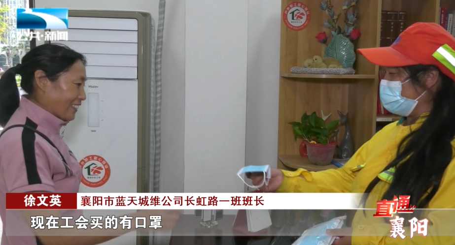 襄阳市蓝天城维公司长虹路一班班长 徐文英:“有时候坐公交车(没戴口罩)上不了,就过来问,师傅你这里有口罩吧?我们就给他一个,现在工会买的有口罩,每次来人要,我们都给。”