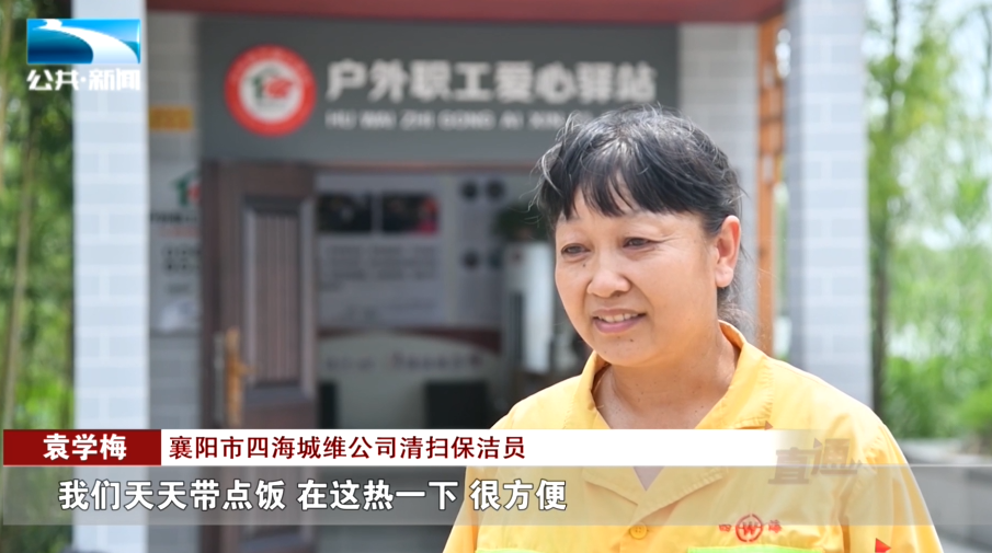 襄阳市四海城维公司清扫保洁员 袁学梅:“有了驿站以后,我们天天带点饭,在这热一下,很方便。”