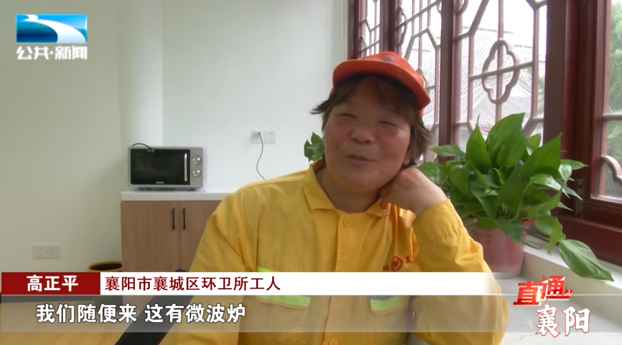 襄阳市襄城区环卫所工人 高正平:“我们随便来,这有微波炉,还能坐这喝点水,还能歇一下。”