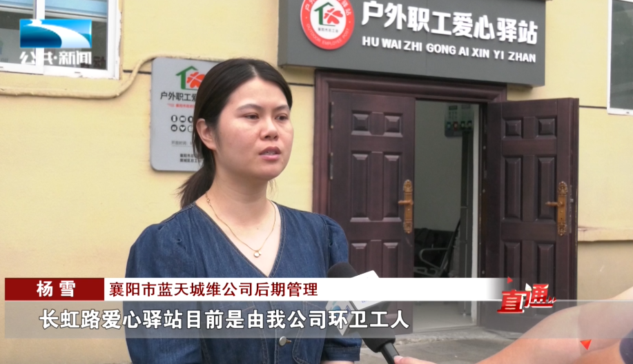 襄阳市蓝天城维公司后期管理 杨雪:“长虹路爱心驿站目前是由我公司环卫工人定点在这里日常保养和做一些保洁工作,目前她们轮流义务在这里兼职,其它班的一些班组成员也都(把这里)当成自己的家一样。”