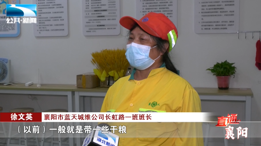 襄阳市蓝天城维公司长虹路一班班长 徐文英:“(以前)一般就是带一些干粮,就在门面上要点水喝,(现在)天热或冷的时候,有时间还可以坐在这里休息一下,肯定比以前好多了。”