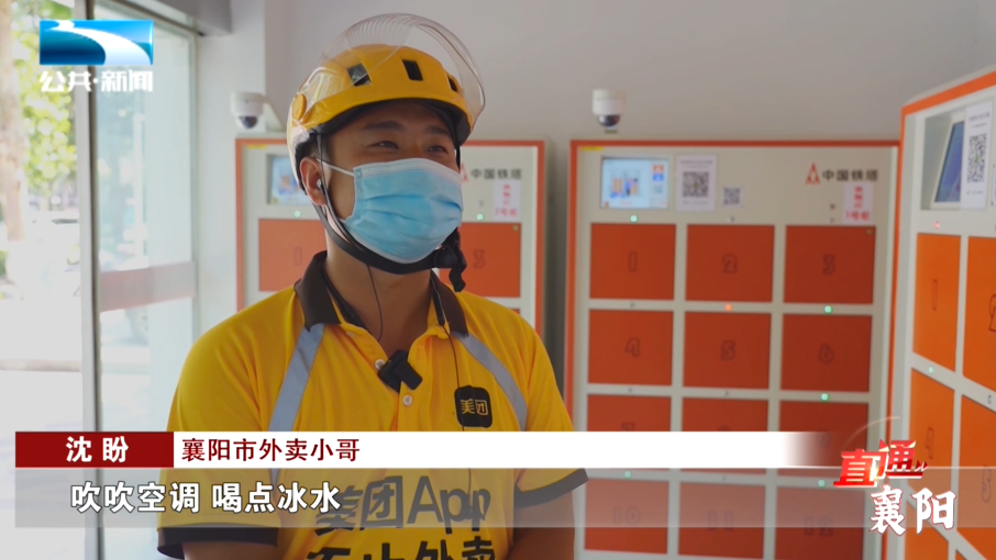 襄阳市外卖小哥 沈盼:“吹吹空调,喝点冰水,我们骑手还是蛮温馨的。”