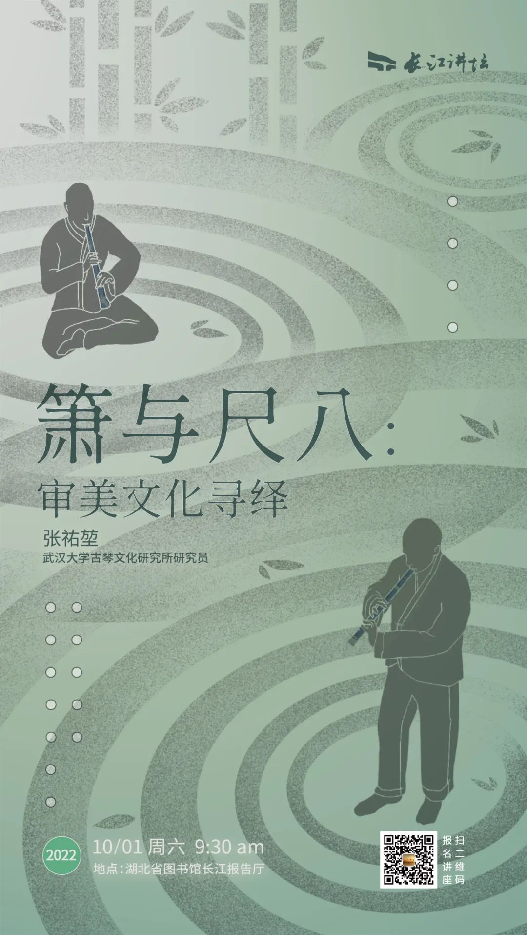 箫与尺八同宗。箫,历史悠久,音色圆润轻柔,幽静典雅,适于独奏和重奏。本场讲座主讲人将以边讲边演的形式,为我们讲述箫的历史、箫与尺八的关系、际遇差异与审美趣尚等内容,并将现场演绎传统箫曲《鹧鸪飞》《梅花三弄》《寒江残雪》,以及现代箫曲《寒山僧踪》《枉凝眉》《二月杏花》等曲目。 主讲:张祐堃,武汉大学古琴文化研究所研究员,中国音乐家协会二胡学会会员,中国音乐家协会钢琴调律学会会员,中国音乐家协会奥尔夫专业委员会会员。1990年毕业于武汉音乐学院,师从舒琛珍先生学习视唱练耳专业,师从毛中明先生学习二胡演奏。精于中国民族传统乐器的研究与演奏,潜心研究古琴音律的运用以及琴曲的打谱、移植。2018年出版古琴独奏专辑《荆襄龙吟》。