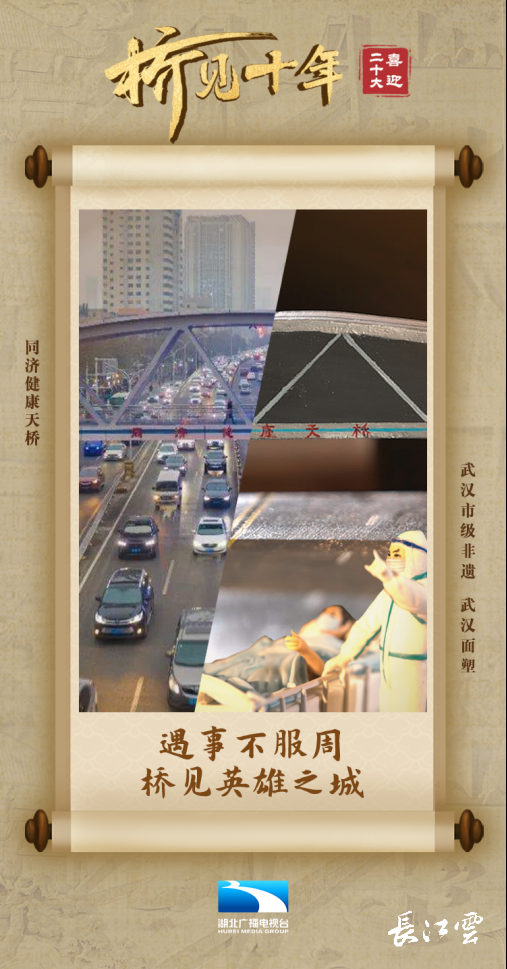 10月1日-10月7日,湖北广播电视台推出喜迎二十大特别策划《桥见十年》。以桥为载体,通过人物故事和情感表达,集中反映十八大以来湖北经济社会的辉煌巨变和人民群众的获得感和幸福感,讲述湖北十年之变、中国十年之变。
