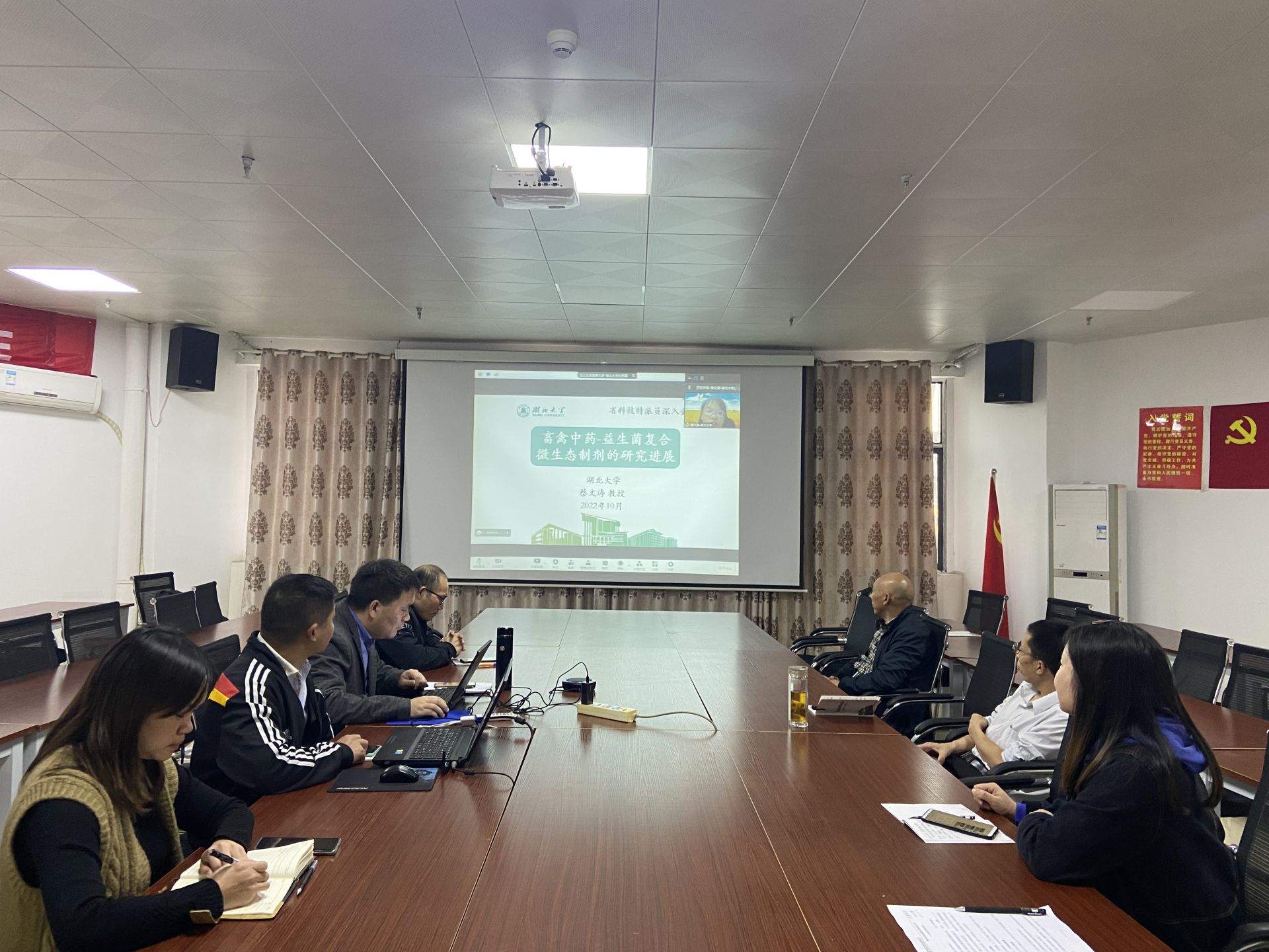 10月21日,湖北大学派驻湖北房县的湖北省科技特派员、湖大生命科学学院蔡文涛教授走进企业,为湖北武当动物药业有限责任公司开展助企纾困专题培训讲座。