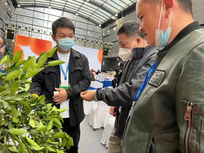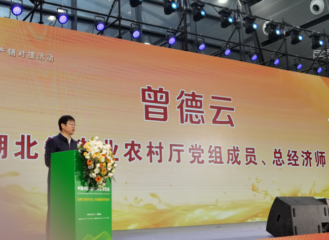 活动现场,湖北省农业农村厅党组成员、总经济师曾德云化身“好物推荐官”,向在场的采购商介绍了湖北当季主打农产品——柑橘的产业优势。