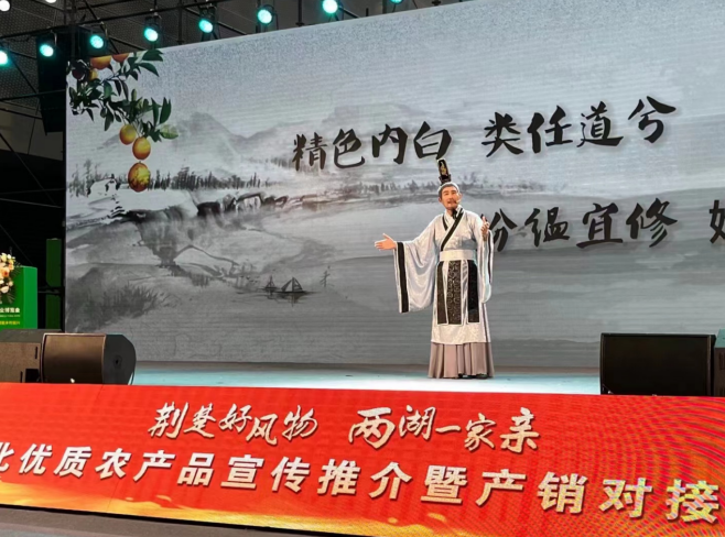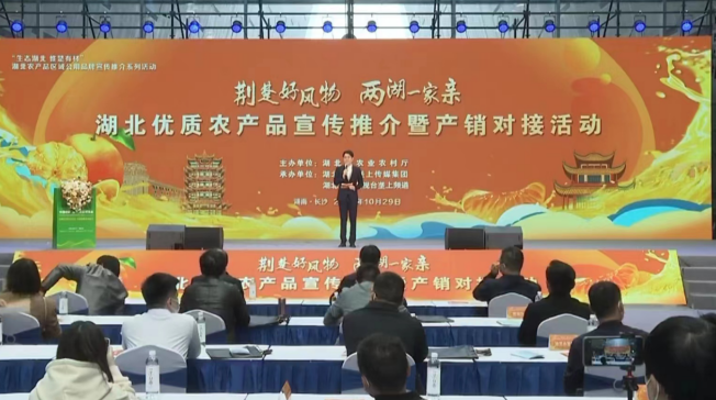 2022年10月29日,由湖北省农业农村厅主办的湖北优质农产品宣传推介暨产销对接活动在湖南长沙国际会展中心举行。宜昌蜜桔、秭归脐橙、武当蜜桔、宣恩贡水白柚、荆州鱼糕、恩施硒茶等湖北农产品区域公用品牌,抱团出省,香飘星城。