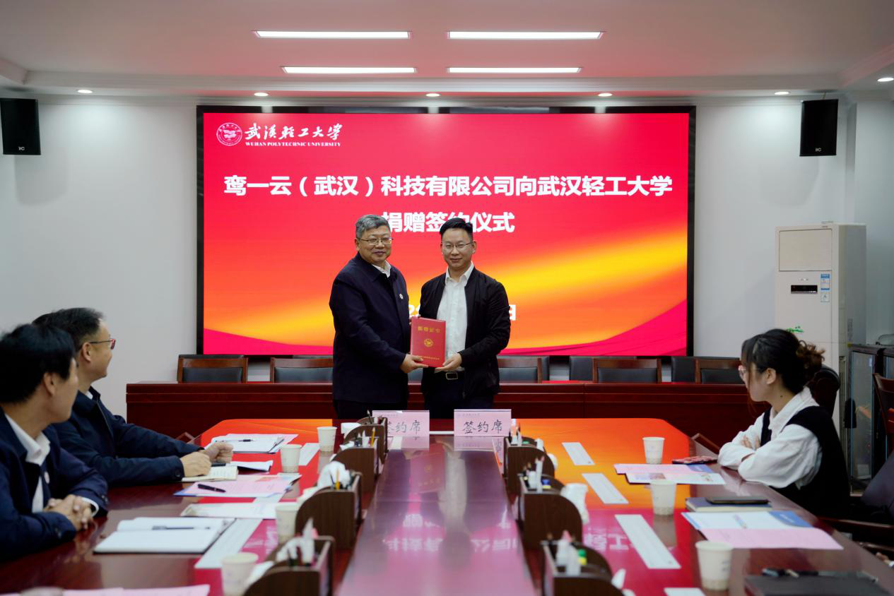 10月28日下午,鸾一云(武汉)科技有限公司向武汉轻工大学捐赠签约仪式在该校常青校区1号会议室隆重举行。鸾一云(武汉)科技有限公司董事长蒋坤代表公司向学校教育发展基金会捐赠4000万元。
