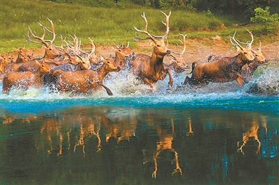 保护成效:麋鹿初始建群数为北京38头、江苏大丰39头,2022年6月底全国麋鹿数量近万头。
