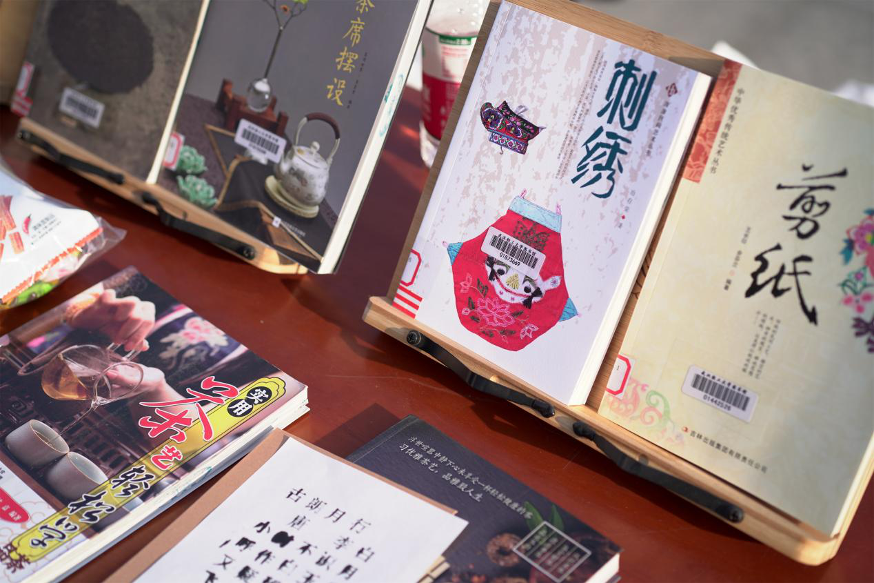 “今年除了一个个民俗活动的体验区,我们还安置了国风舞台表演,比如刚刚看到的汉服走秀《踏歌行》、京剧《文昭关》和《杨门女将·探谷》,接下来还会有《一花一剑》古风歌曲和笛箫合奏《神女劈观》。这都是校内各社团主动为这次民俗节提供的表演,想让同学们不仅能‘玩好’,更能‘沉浸’在传统文化氛围中。为了配合非遗体验活动,我馆还推出‘发掘千年瑰宝,传递创新秘钥’非物质文化遗产传统技艺类图书展,方便同学们进一步学习和钻研非遗文化。”图书馆王春燕老师介绍道。