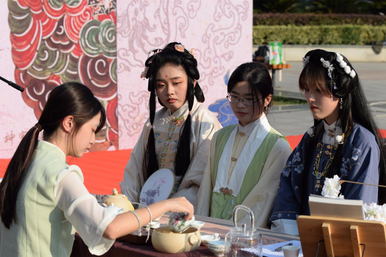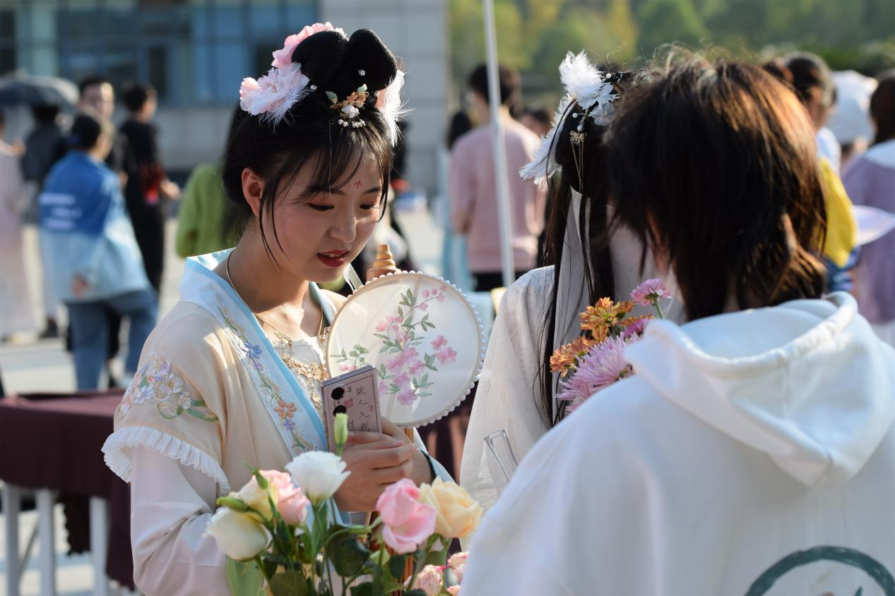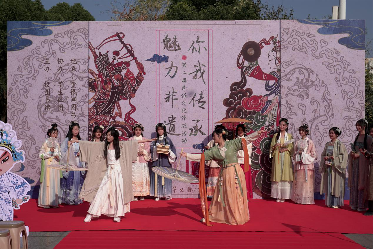 剪纸、活字印刷术体验、篆刻体验、刺绣、汉服走秀……11月6日下午,武汉轻工大学图书馆联合学生社团在金银湖校区青春广场举办了“魅力非遗,你我传承” 第二届校园民俗文化体验活动。此次活动集文艺演出、非遗文化体验、沉浸式民俗游戏活动等多元素为一体,打造“可观、可玩、可品”的沉浸式互动体验,吸引了众多师生参与。师生们通过身临其境地感受非遗文化的魅力,进一步领略了中华文明的丰富内涵和独特价值。