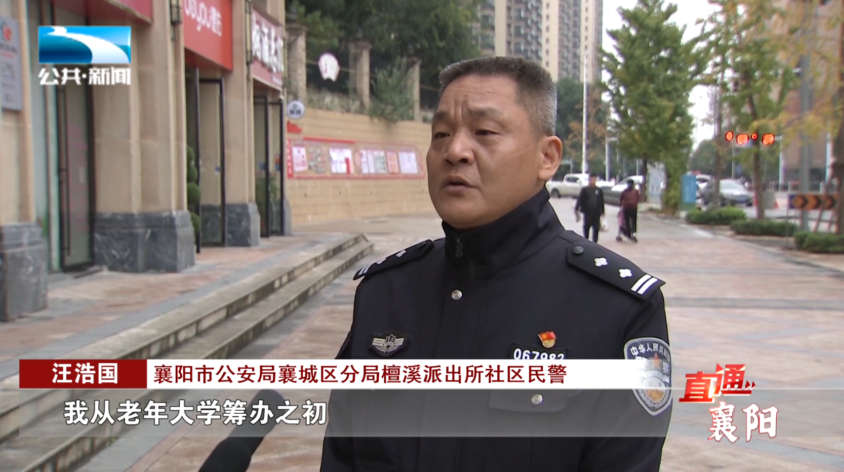 襄阳市公安局襄城区分局檀溪派出所社区民警 汪浩国:“我从老年大学筹办之初,就积极保障各项措施落地,在老年大学开办后,结合社区老年人较多的特点,为社区老年人讲授了开学第一课,引导大家防范养老诈骗,全力保障老年人的人身财产安全。”