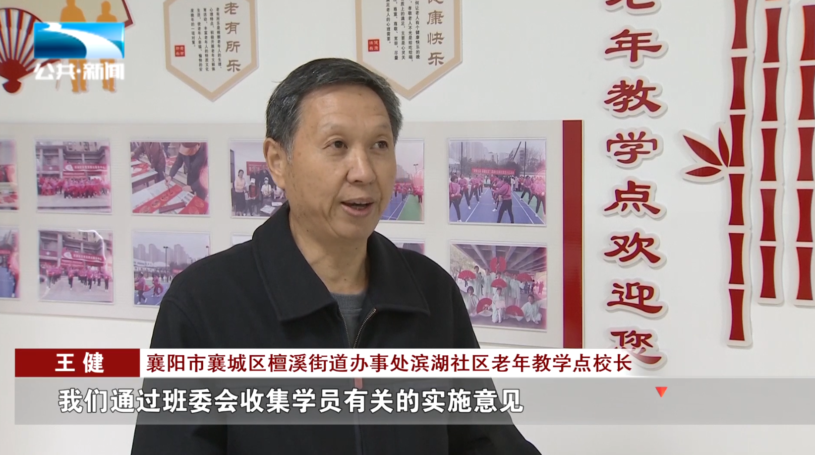 襄阳市襄城区檀溪街道办事处滨湖社区老年教学点校长 王健:“我们通过班委会收集学员有关实施意见,通过不断地改进,来达到我们共同建好我们滨湖社区老年教学点的目的。”