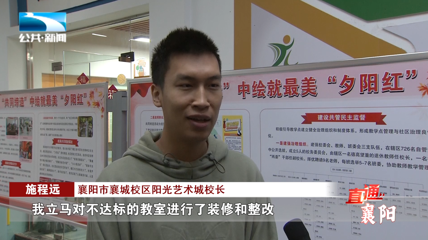 襄阳市襄城校区阳光艺术城校长 施程远:“在确定好教室以后,我立刻对不达标的教室进行了装修和整改,同时购买了新的饮水机,为老年朋友们提供优质的服务。”