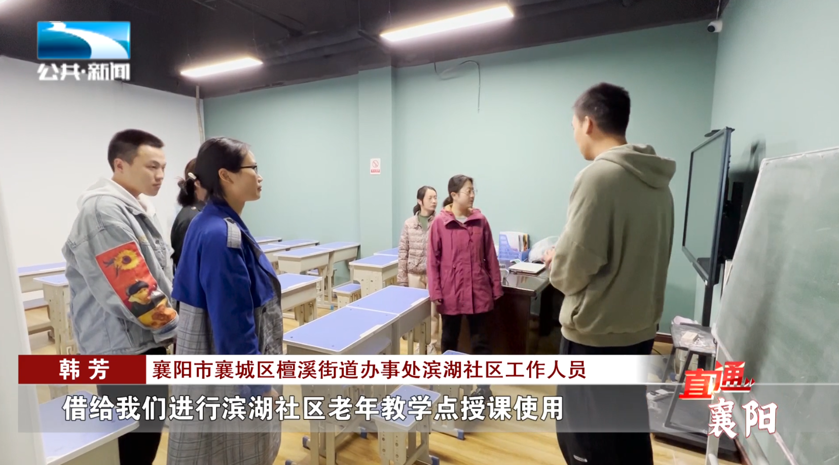 襄阳市襄城区檀溪街道办事处滨湖社区工作人员 韩芳:“阳光教育艺术城现在也决定,把他们平时周一到周五,白天空出来的教室场地借给我们进行滨湖社区老年教学点授课使用。”