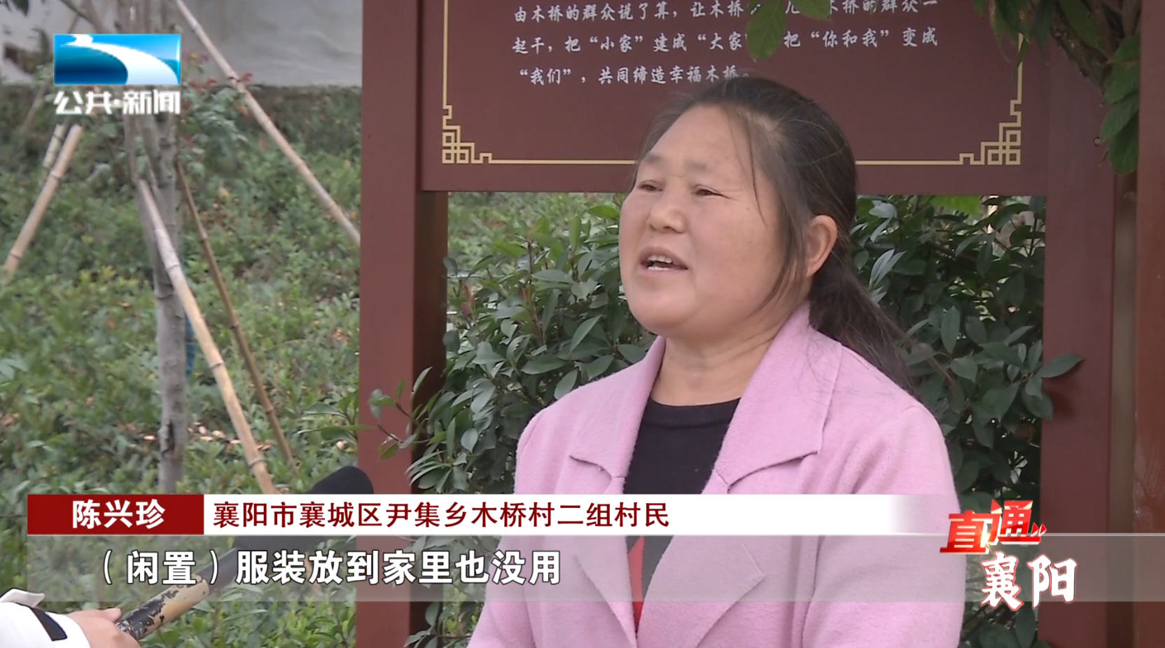 襄阳市襄城区尹集乡木桥村二组村民 陈兴珍:“闲置服装放到家里也没用,衣服送到这里,能穿的,让小孩儿都拿回去穿。”