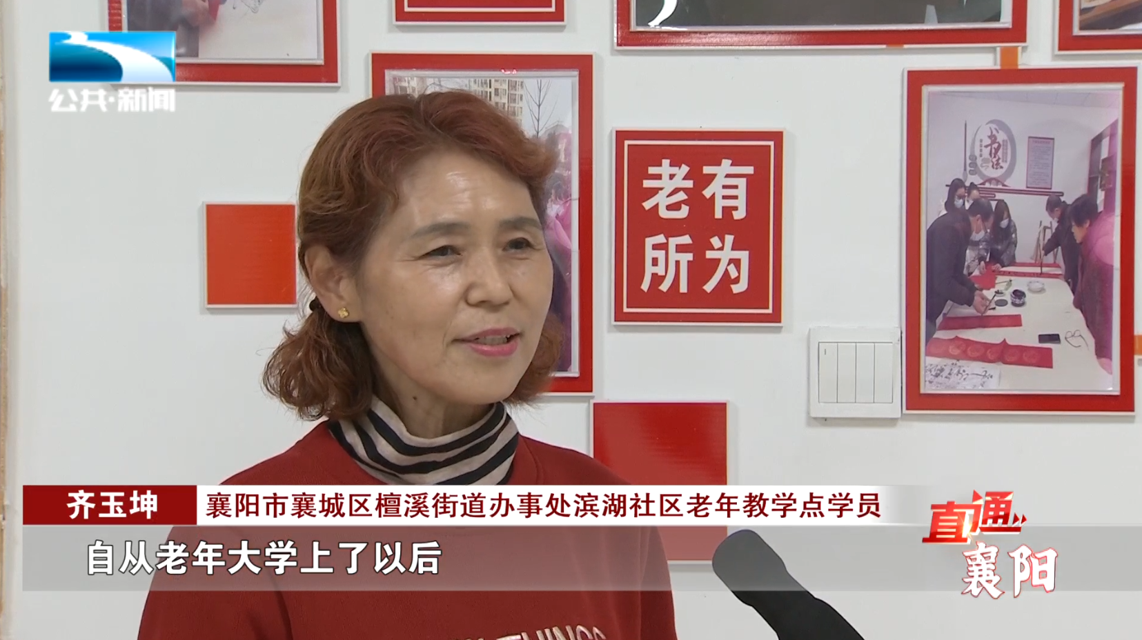 襄阳市襄城区檀溪街道办事处滨湖社区老年教学点学员 齐玉坤:“自从老年大学上了以后,觉得这些课程、教学老师都挺好的,上得挺满意。”