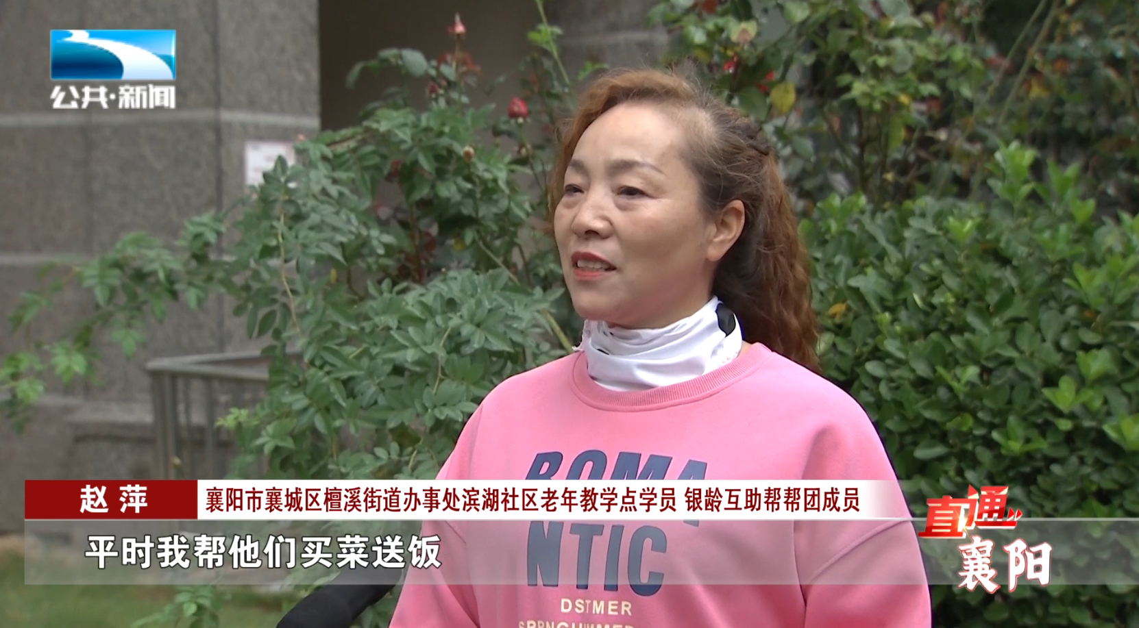 襄阳市襄城区檀溪街道办事处滨湖社区老年教学点学员、银龄互助帮帮团成员 赵萍:“我们小区有一对90岁左右的老夫妇,平时我帮他们买菜送饭,有什么需求我都第一时间上门服务。”
