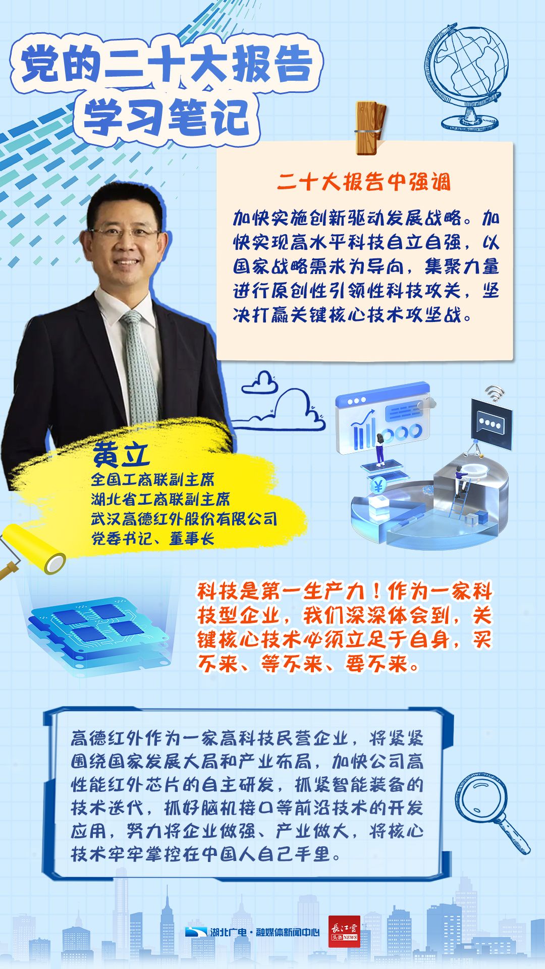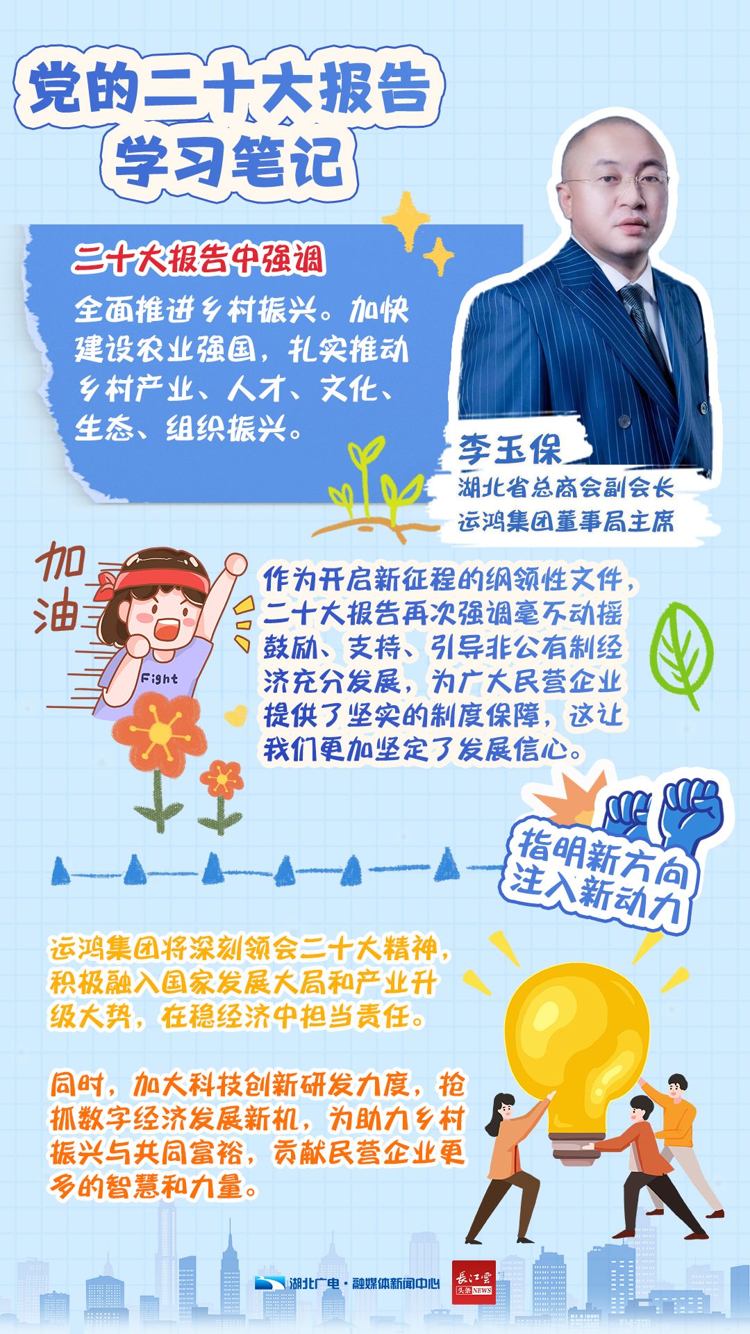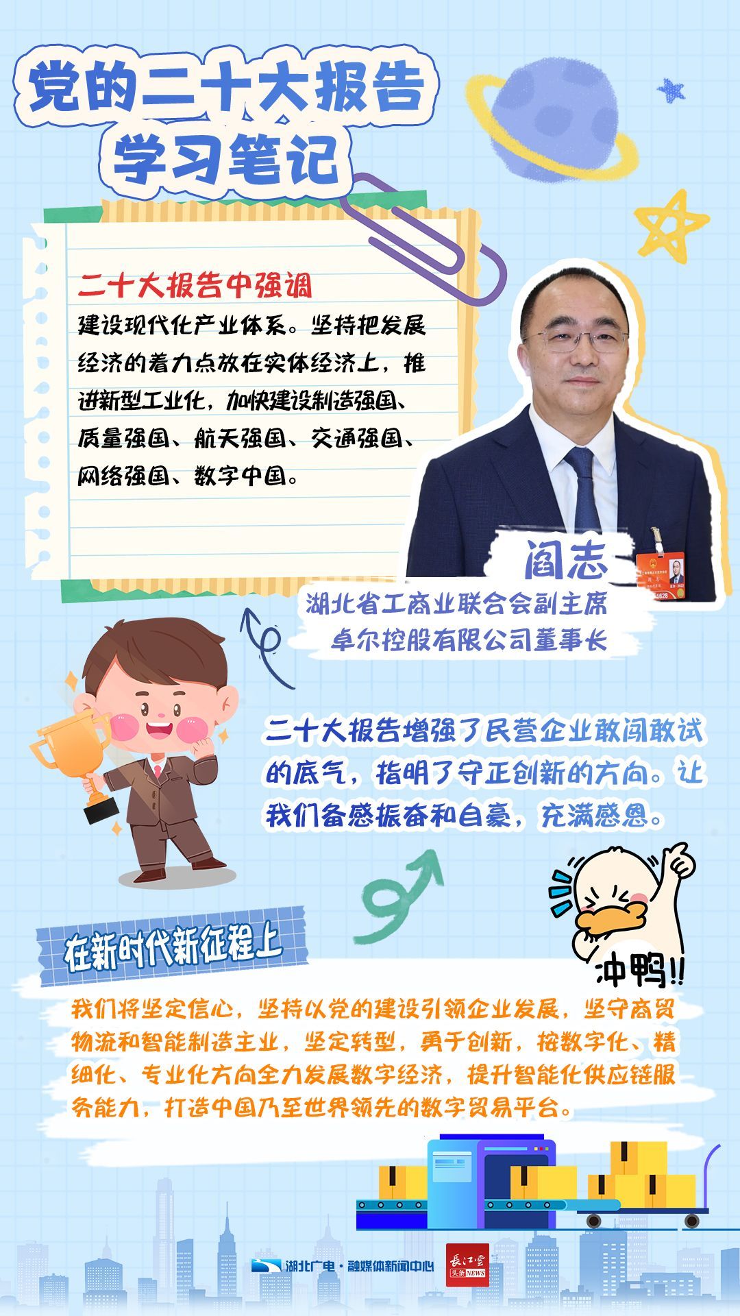 即日起,湖北广电融媒体新闻中心开设《二十大报告学习手账》专栏,和你一同翻开湖北党员干部群众的学习笔记,了解他们的期盼与心声。今天,我们推出第四期《二十大报告学习手账——企业家篇》。