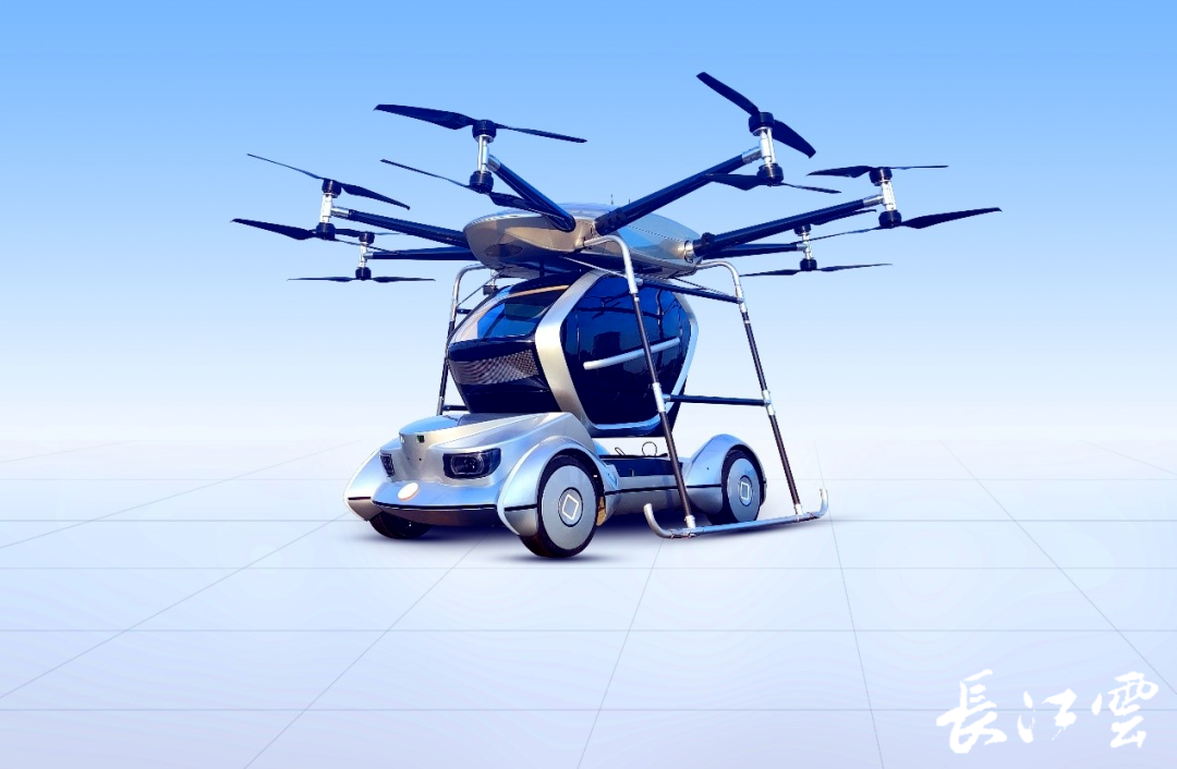 该飞行汽车采用了自主垂直起降飞行器、智能操控座舱和自动驾驶底盘三个独立模块的分体式构型,是面向载人、载物的立体运载系统。