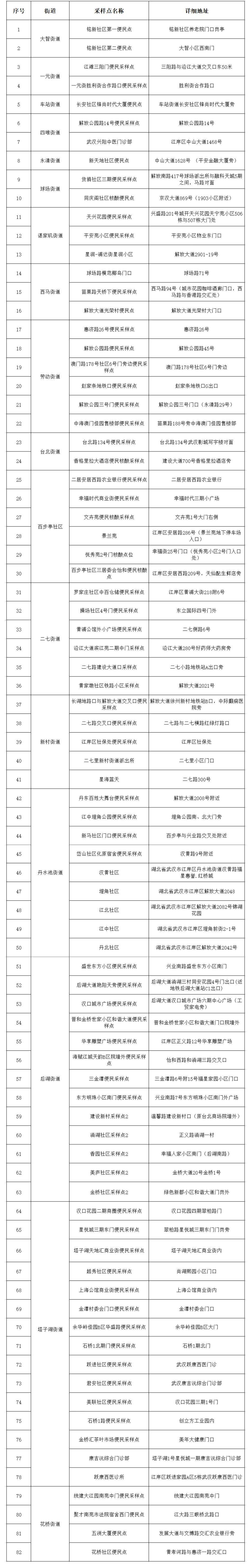 江岸区核酸检测便民点