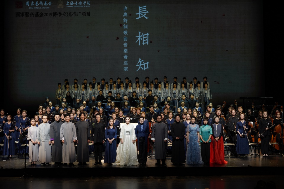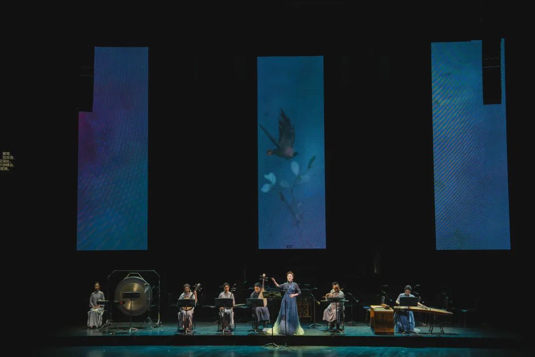这台音乐会的举办意义深远,它集约了上海音乐学院表演艺术、音乐科技与传媒艺术、音乐理论及院内外作曲领域的团队力量,精心地用古典容装、舞美与装帧手法,诠释和咏叹出民族声乐艺术的审美感染力。这不仅彰显了中国古典诗词的语境、曲意,弘扬了中国传统文化的内涵,更以不断更新的创演姿态延续了中国古诗词歌曲的艺术生命能量。