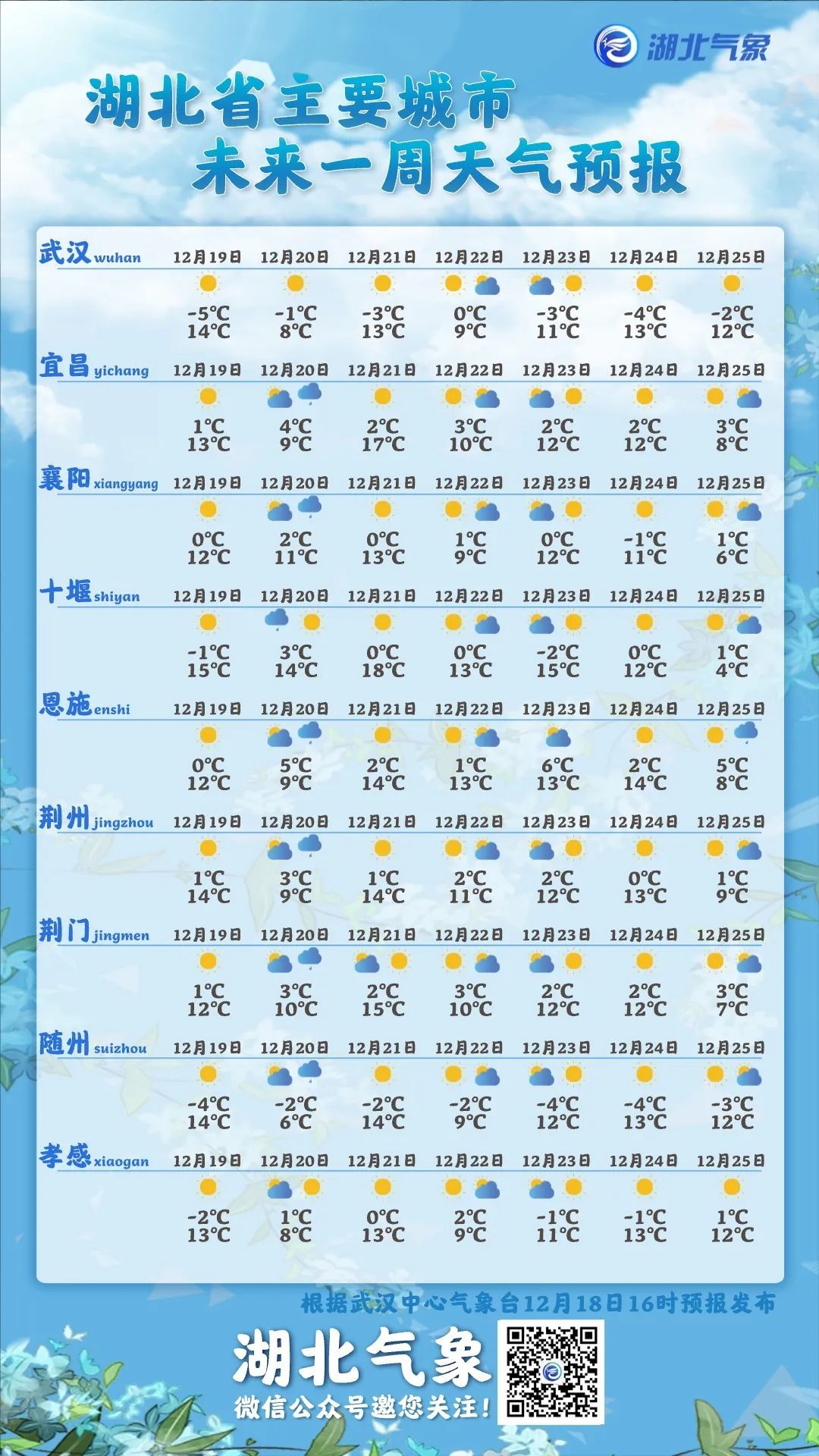 全省超过30个县市低温都在-5℃以下,随州最低,仅-9.4℃,为有气象记录以来该地12月中旬的最低气温。