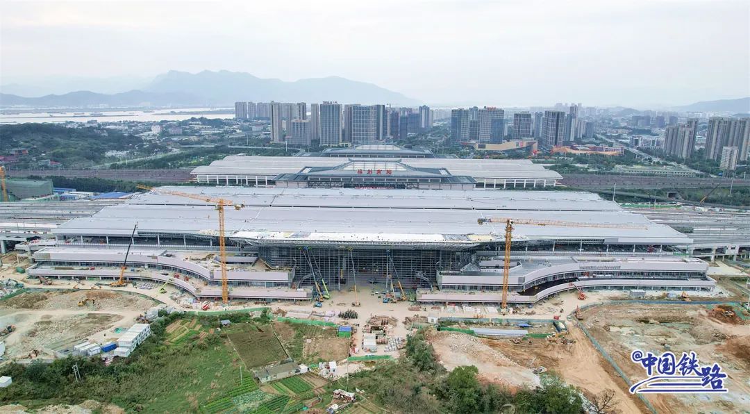 福厦高铁福州南站房屋建筑及配套工程属扩建工程,位于既有福州南站东侧设客专场,新建总建筑面积40.72万平方米,其中站房建筑面积5万平方米,站场规模8台16线,建成后共15台30线。