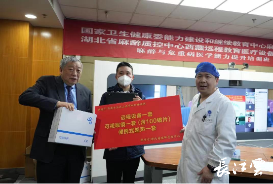 “对于受赠的医院来说意义非凡,在增加了医疗仪器的配备同时,还弥补基层医疗技术短板,提升基层医疗麻醉诊疗水平,并为医院及广大患者提供了有力的医疗保障,更是带来了麻醉质控中心精准帮扶的责任之心。”2023年1月6日,湖北省麻醉质控中心通过线上线下的方式启动“湖北省麻醉质控中心远程教育学院西藏捐赠仪式”,为西藏自治区人民医院及西藏自治区山南市妇幼保健院,共捐赠远程设备、可视喉镜及便携式超声仪器共两套,价值40万元。