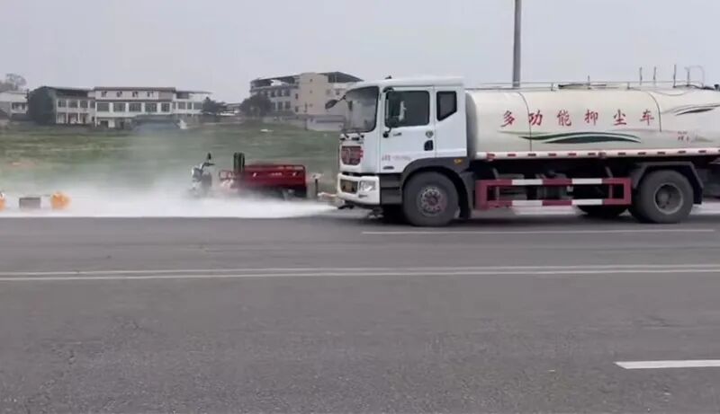 据悉,1月8日,四川成都金堂县赵家镇多名商贩在路边摆摊,一辆洒水车经过时水喷到了摊位上。记者从网传视频看到,在一条双向四车道的路上,一辆洒水车沿着路边车道行驶,边鸣笛边洒水,沿途大量水花喷洒到路边商贩。随后,金堂县交通运输局一名工作人员曾公开回应称,涉事路段不允许路边摆摊,“问了养护公司,他们表示喷的是地面,水压大才喷到商贩。”