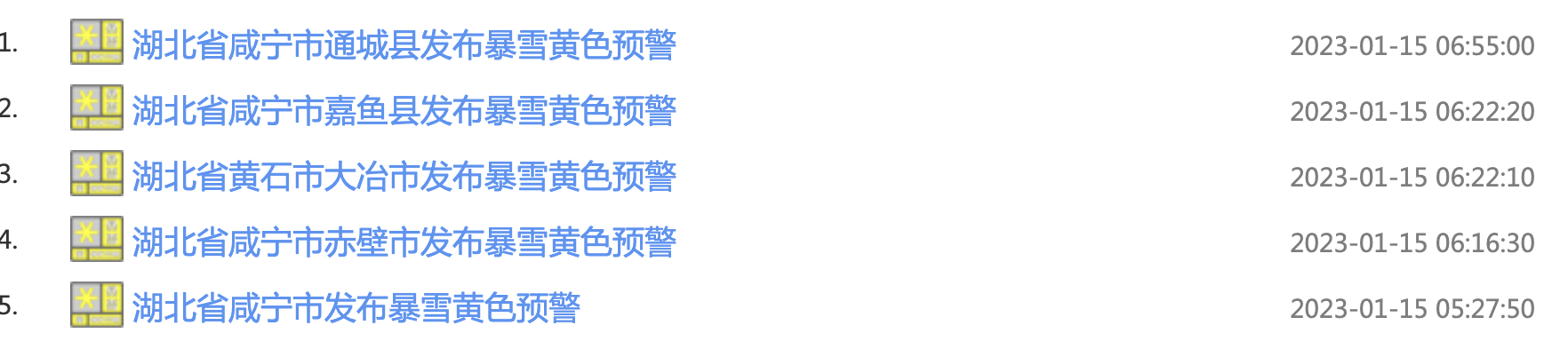 据湖北省气象局,湖北咸宁、黄石等地发布暴雪黄色预警,出行请注意!