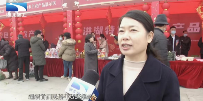 洪湖市农业农村局党组书记、局长李贤琼告诉记者,组织首届民俗年货赶集会, 主要目的就是展示洪湖乡村振兴的成果,宣传推介洪湖的龙头企业和农产品品牌,创新了市民传统打年货的方式。