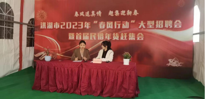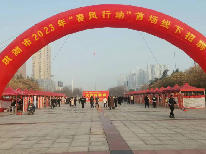 2023年1月11日至13日,2023年“春风行动”大型招聘会暨首届民俗年货赶集会在洪湖市荷花广场举行。