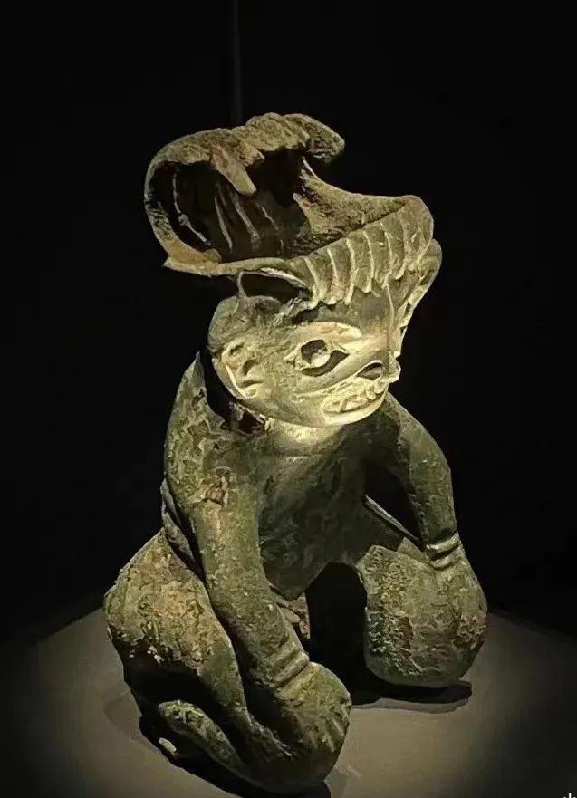 根据图片中的形状可以看出是一个跪坐青铜人像。