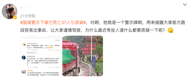 近日,浙江泰顺县一段网传视频引发关注,某公路旁警示标语显示“前方13.6公里长下坡已死亡37人!”