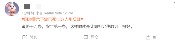 不少网友留言表示,这样看似“吓人”的提醒,可以引起驾驶员重视,起到真正的警示作用。