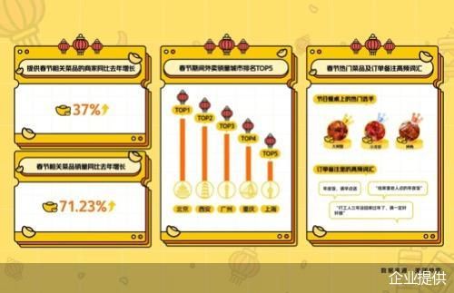 不仅如此,外卖还是保供的重要举措之一。美团外卖数据显示,今年春节假期期间,提供春节相关菜品的商家同比去年增长了37%,春节相关菜品销量同比去年增长了71.23%,其中北京春节期间外卖销量位列第一。而为了做好保供工作,饿了么平台上超过八成药店在过年期间不打烊,饿了么还与多家医疗器械连锁品牌合作,在北京、上海等全国近20个城市,已可实现血氧仪、制氧机等产品全城送,最快30分钟送达。