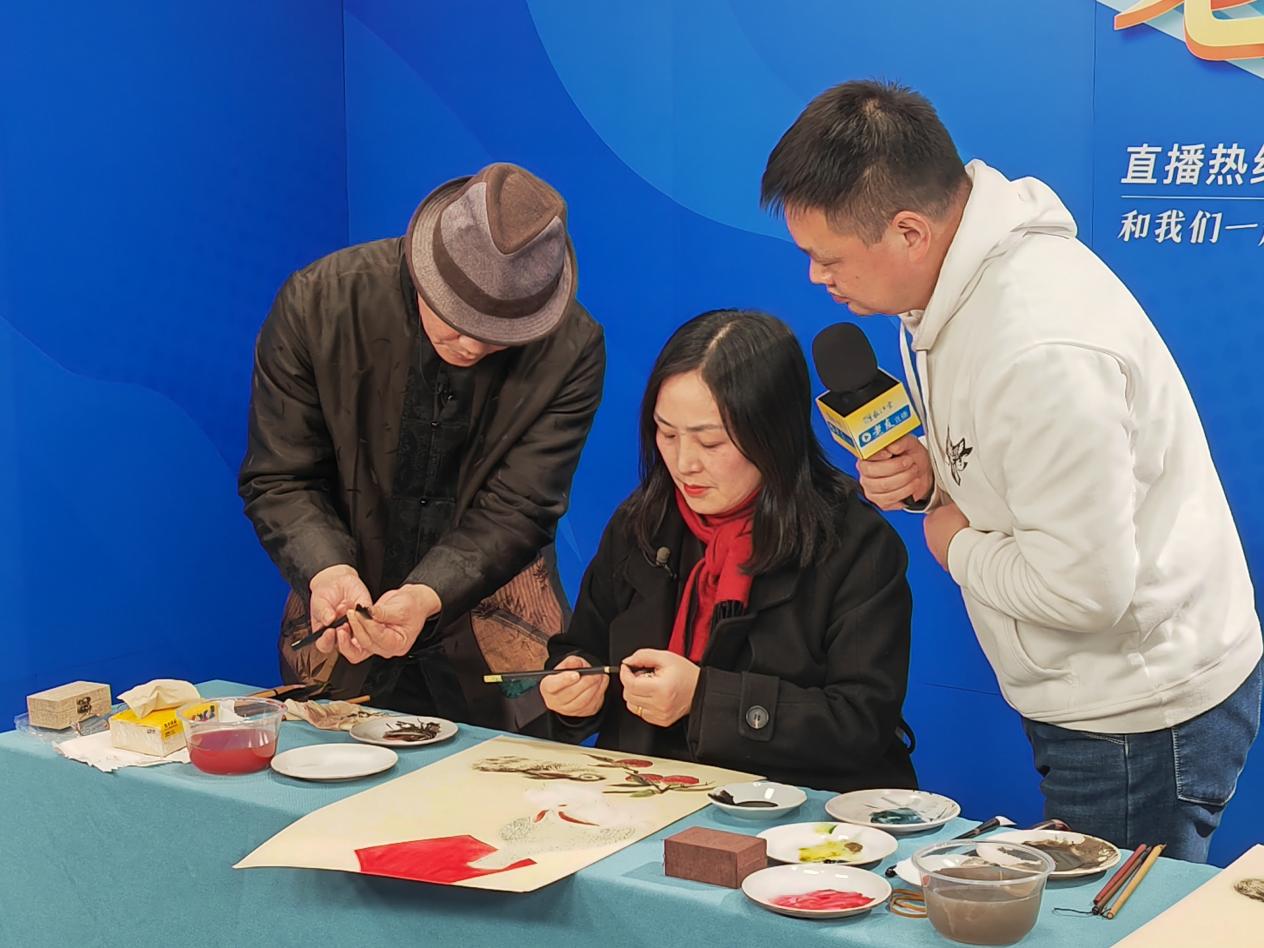 本期的另一位嘉宾艾红莉,是中华传统民俗文化的忠实爱好者,她在担任白骏老师助理的同时也是白骏老师的学生。在谈及学习水墨画的心路历程时她向记者表示:“学习的过程很快乐,让我深刻感受到了中国传统民俗文化的魅力,在今后的日子里我会号召身边更多的人来学习水墨画,将传统文化发扬光大!”
