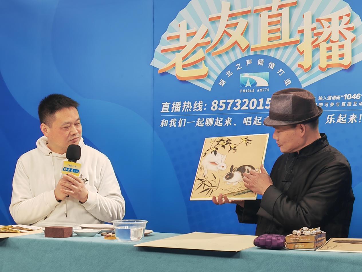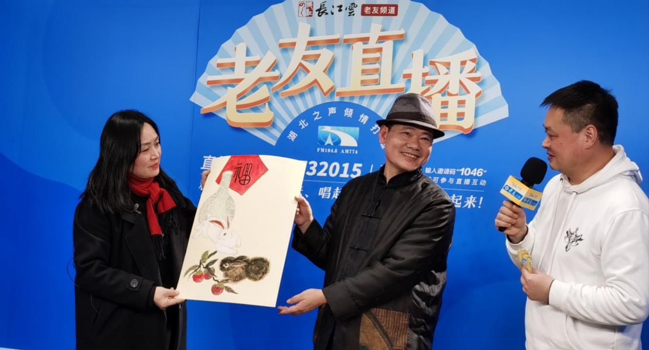 1月17日14:00—15:30,湖北广播电视台湖北之声、长江云老友频道开启《你好!兔年》系列直播,带来老年大学公开课,教授的内容是“教您画出吉祥兔”。主播王建邀请湖北省书画研究院院士、中国书画院湖北分院特约创作员白骏老师和他的助理艾红莉做客老友直播间,教老友们画工笔画《玉兔晟平,大吉大利》,和老友们一起迎接兔年的到来。