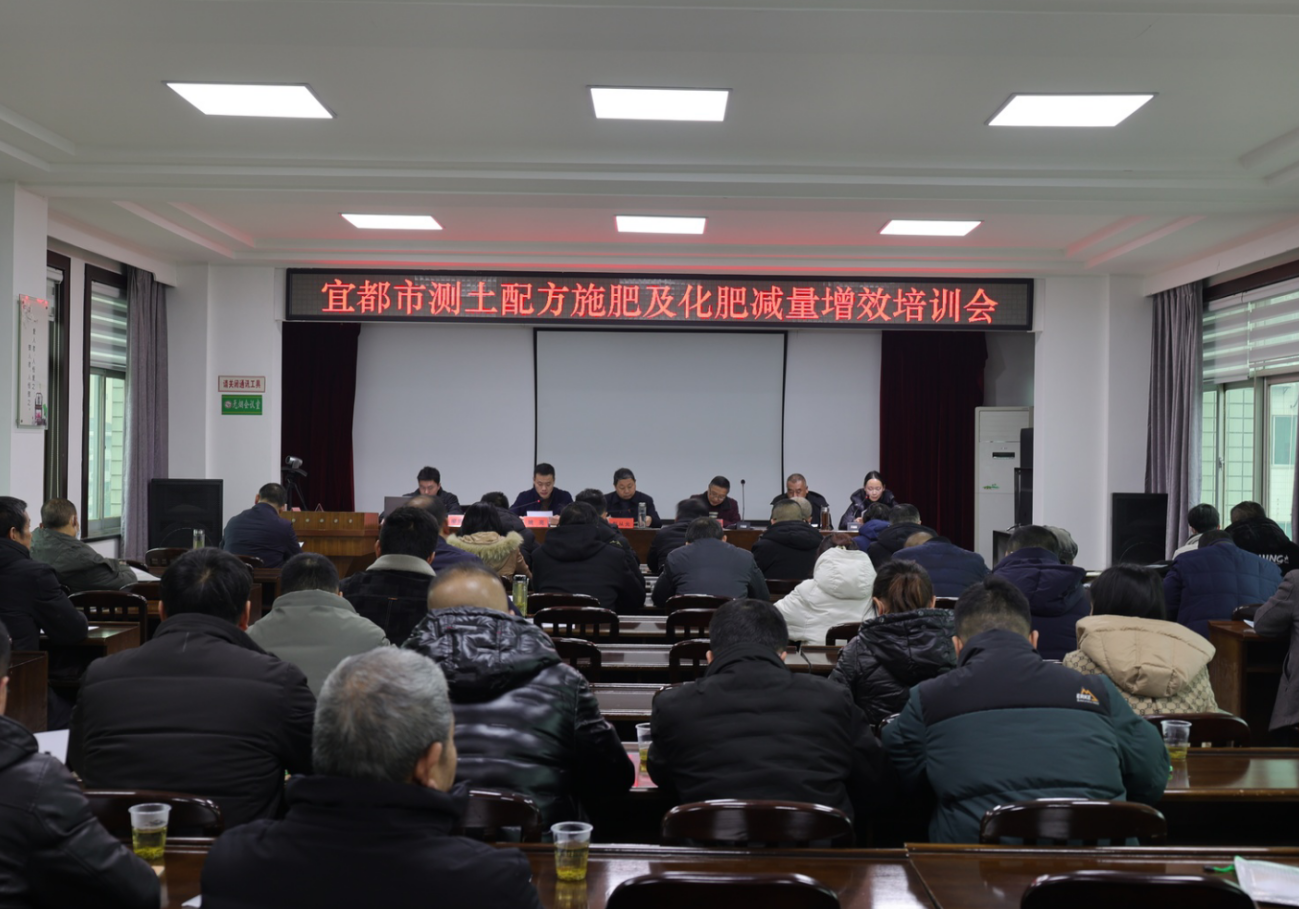 2月16日上午,宜都市农业农村局组织全市10个乡镇(街道)农技中心主任、化肥减量增效项目实施业主、配方肥销售网点负责人等70余人到宜都市农业农村局六楼会议室举办测土配方施肥及化肥减量增效技术培训会。