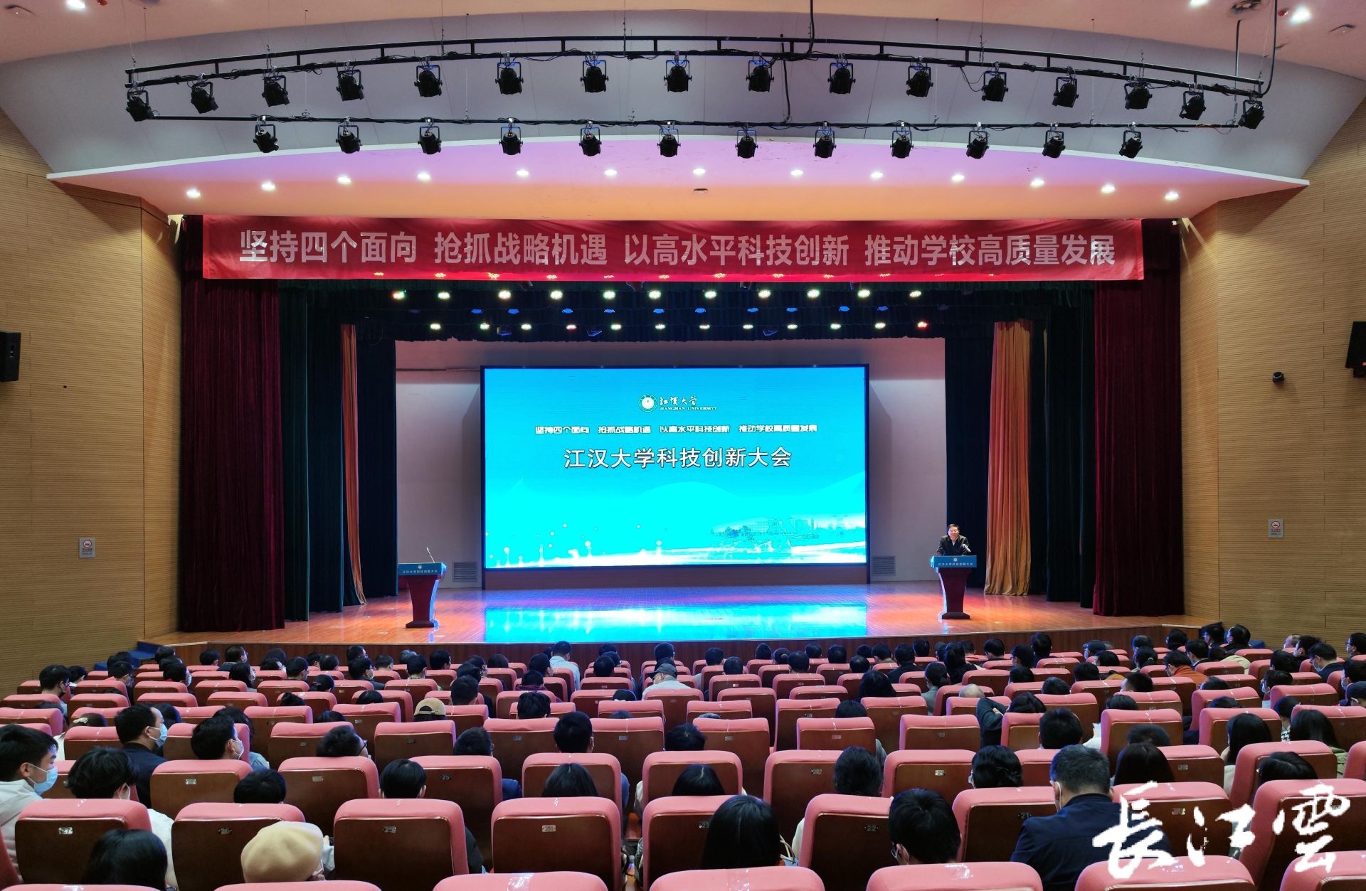 江汉大学校长景新华表示,全校师生要深刻理解“四个面向”的丰富内涵,面向国家需求,积极参与、承接国家项目;面向省市需要,积极融入、对接省市创新体系;面向市场需求,积极构建校企合作的科技创新格局;面向学科需求,积极探索学科发展新机制。他勉励全校师生弘扬团队精神,大力推进有组织的科研;弘扬求真精神,开展真正有价值的科研;弘扬奋斗精神,开展高质量的科研;弘扬奉献精神,开展有情怀的科研。