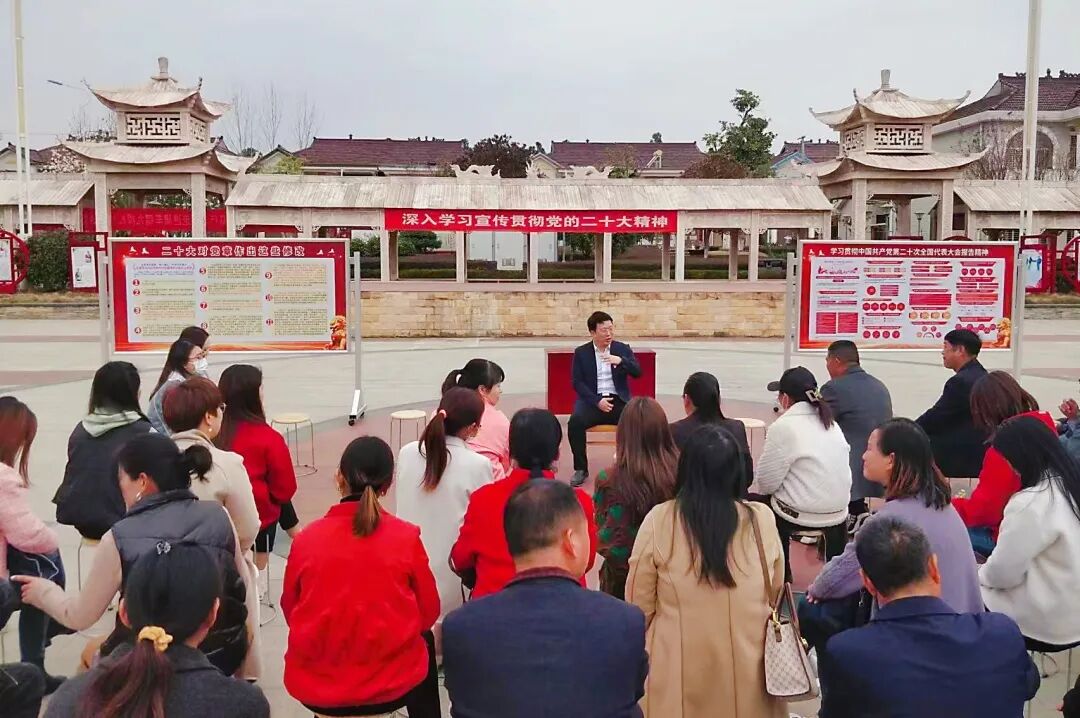 在许岗村,华中科技大学马克思主义学院讲师王锐,以《中国式现代化全面推进中华民族伟大复兴》为主题,带领群众了解新时代十年伟大变革,与村民共话乡村振兴发展大计,把大会精神“聊”进了老百姓的心窝里。