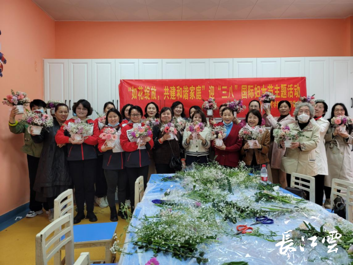 “莺初解语,最是一年春好处”,3月8日,武汉市江岸区二七街道预警学院社区举办了一场“三八”妇女节艺术插花主题活动,吸引了居民、军嫂和预警学院幼儿园老师等花艺爱好者参加。