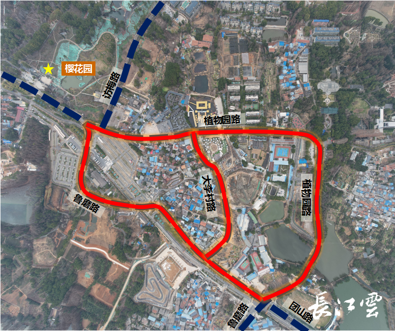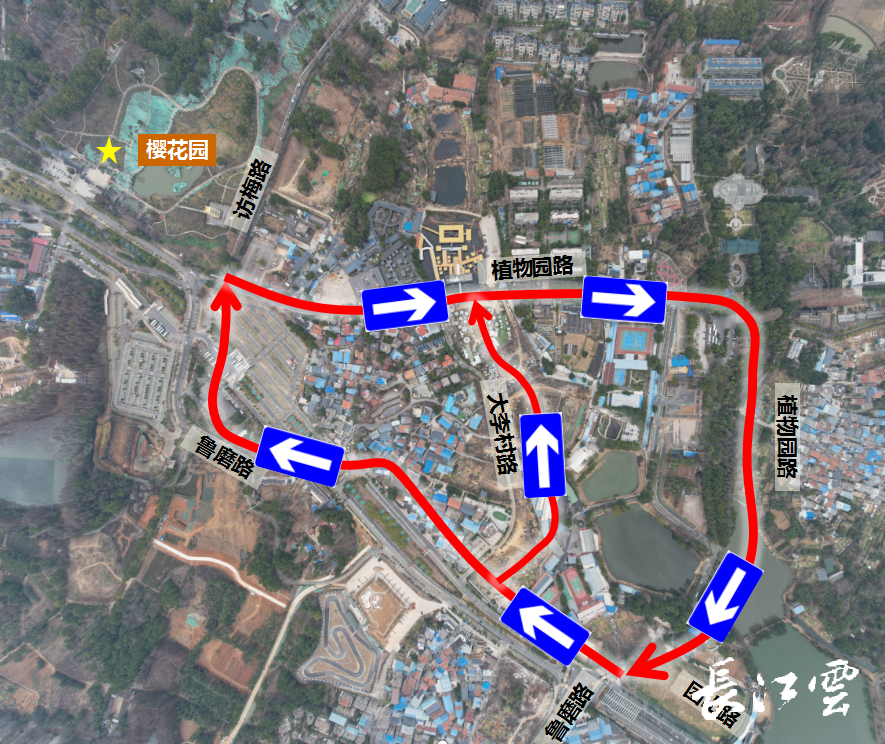地铁:乘坐地铁在8号线「梨园」站下车,从「湖光序曲」驿站进入东湖绿道,再乘坐观光车即可到达樱花园附近。