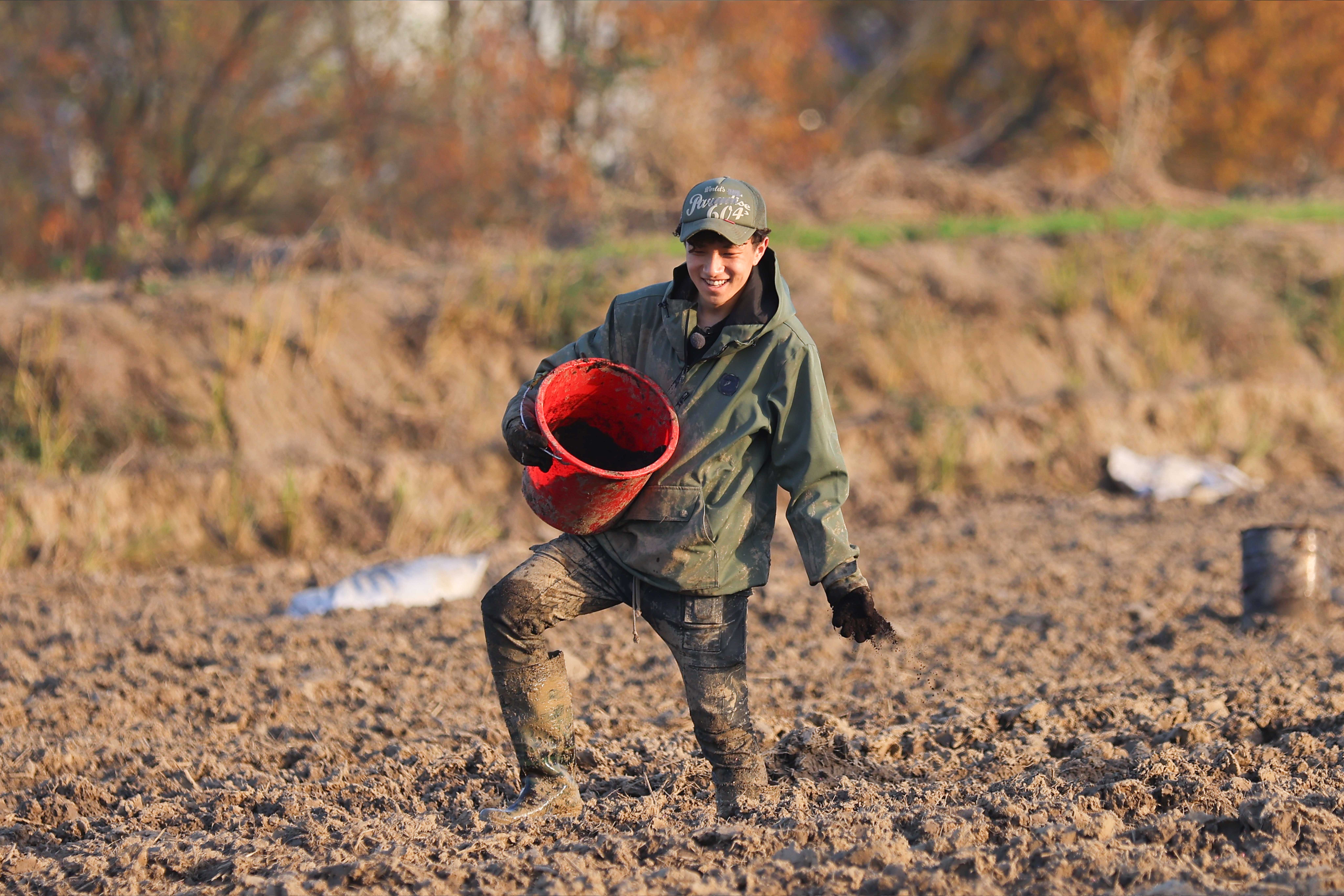 冬季杭州的雨天,阴冷潮湿,稻田泥泞不堪。前一天通完水渠,大家疲惫不已,扑面而来的30吨化肥,让人再一次“陷入绝望”。