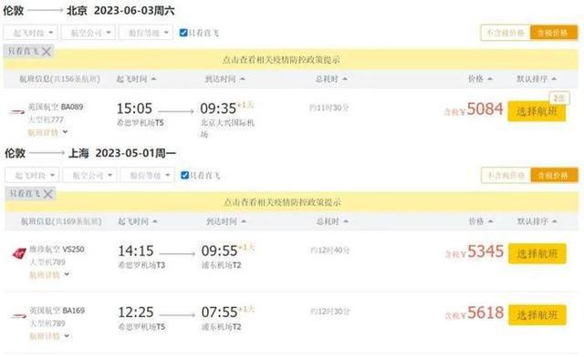 曾经供不应求、炒到七八万一张的英国回国机票也一路跳水。“英国回国的机票价格是此前高峰期的十分之一左右。”机票代理商周海告诉时代财经,去年8月中英复航初期,航司官方经济舱票价最低都要两三万,如今都稳定在万元以下了,“三四千就能买到。”