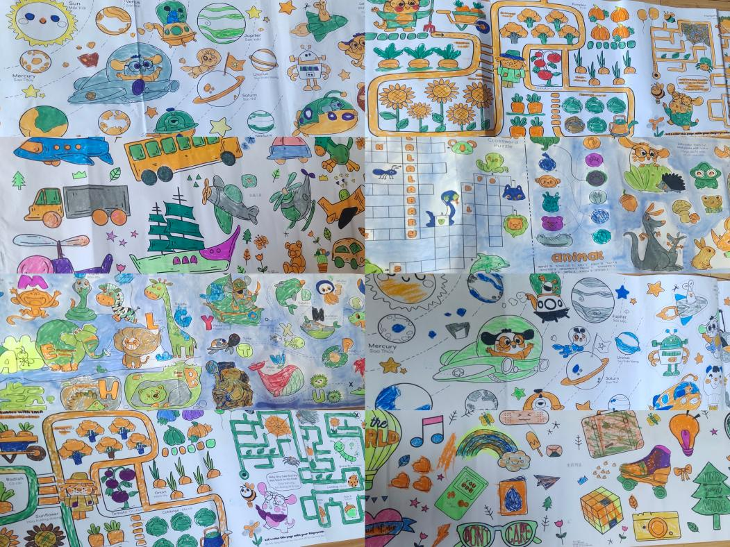 武汉工程大学光电信息与能源工程学院、数理学院的30多名志愿者利用平时下课的时间,画了生活中常见的水果、动物、植物,为了能和孩子们能连接得更紧密,志愿者们画的物品都只画一半,剩下的让孩子们去继续完成。